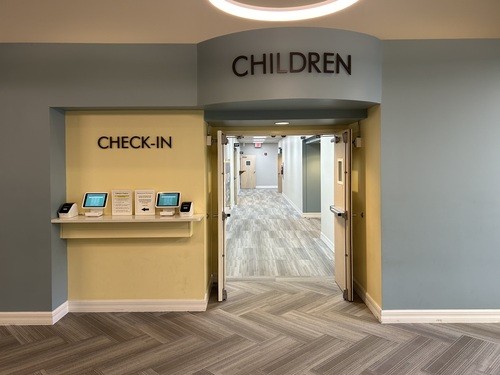 Head towards the children's check-in to sign up or check-in your child.